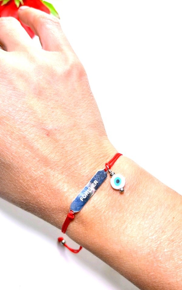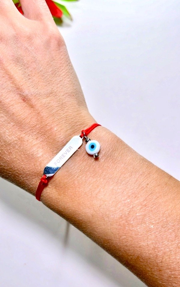 Pulsera regulable hecha a mano con dije de acero y ojito de vidrio!
