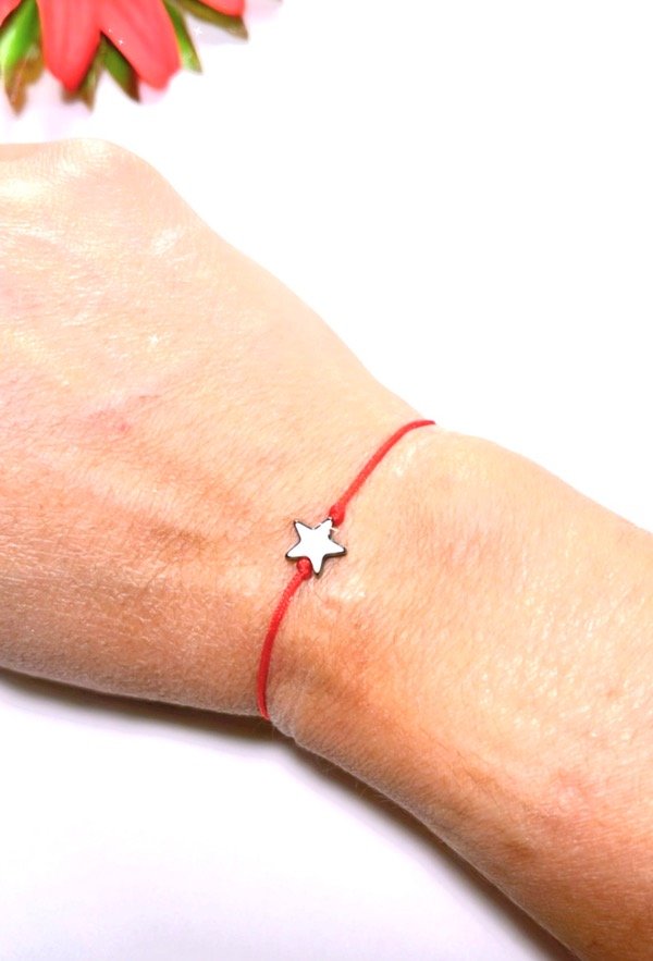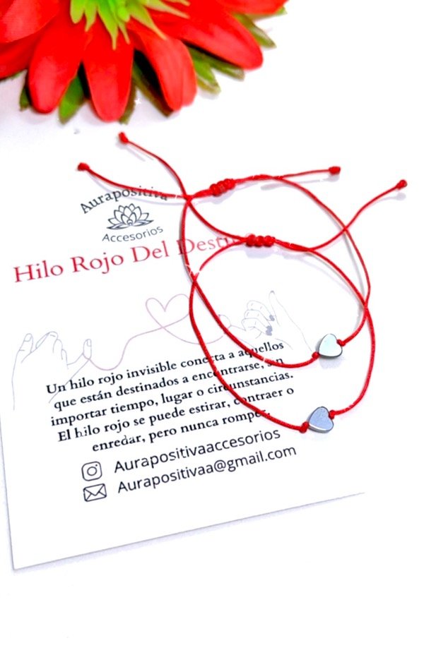 Pulsera regulable hecha a mano con hilo chino súper resistente y piedra hematites forma de corazón o estrella.