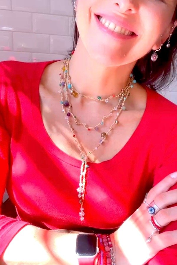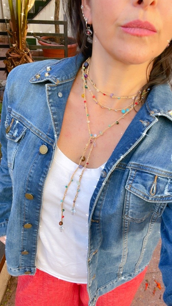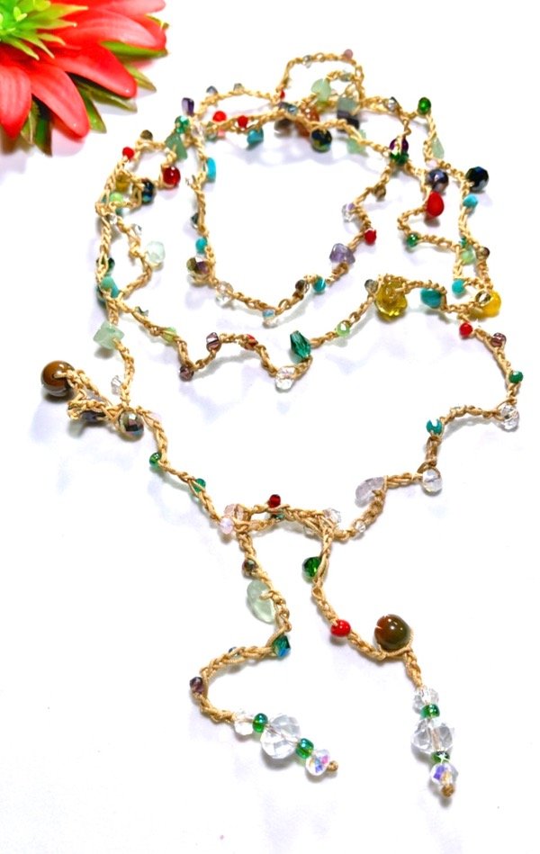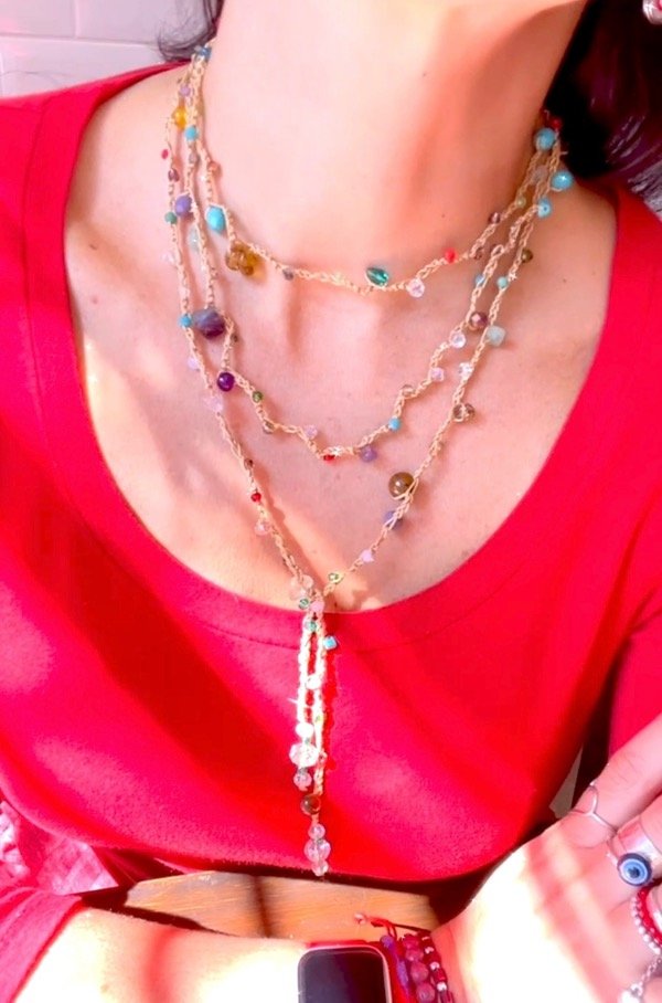 El famoso collar mil vueltas llegó a Aurapositiva, tejido a mano con hilo de primera calidad!. No hay dos collares iguales! . El color del hilo y las piedras las elegís vos. Mide 1,70mt aproximadamente . Las piedras son cristales y piedras naturales como amatista, coral rojo, ojo de tigre y otras!