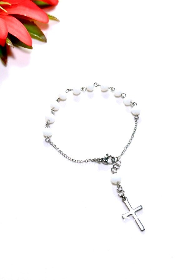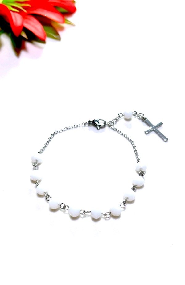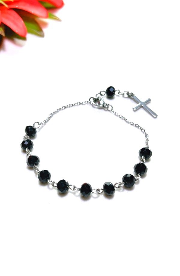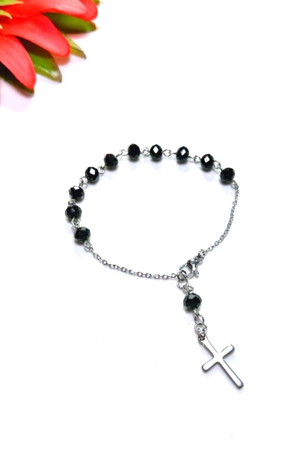 Pulsera denario hecha a mano en acero y cristales de vidrio facetado