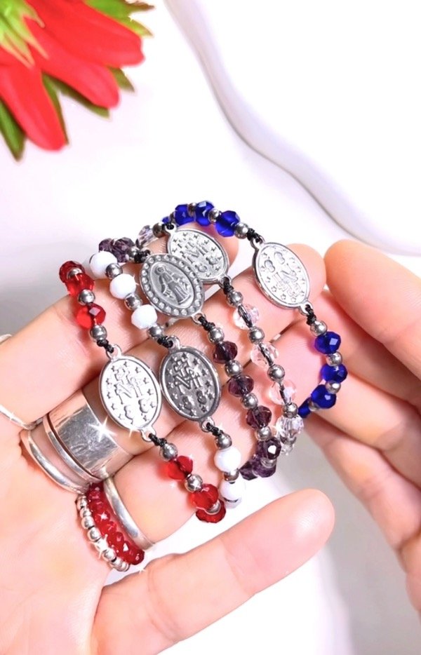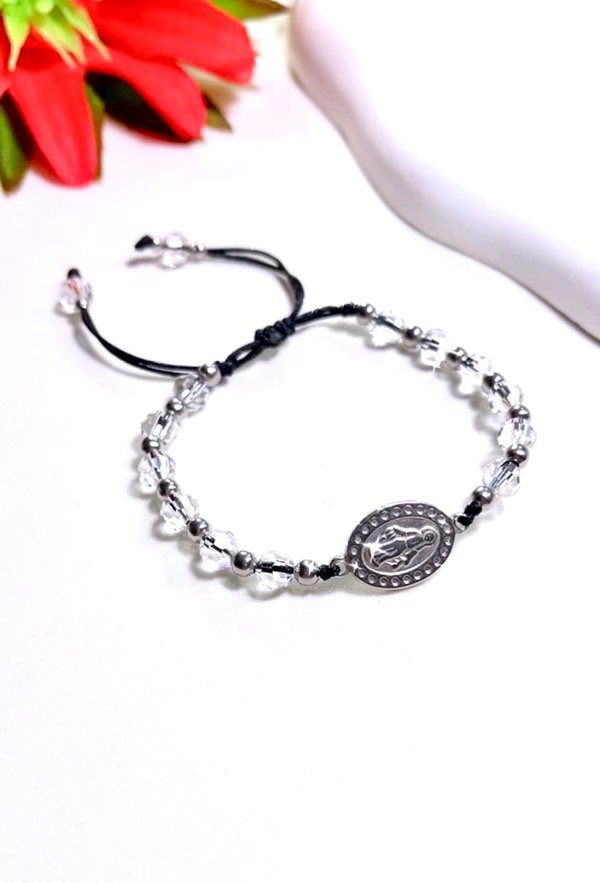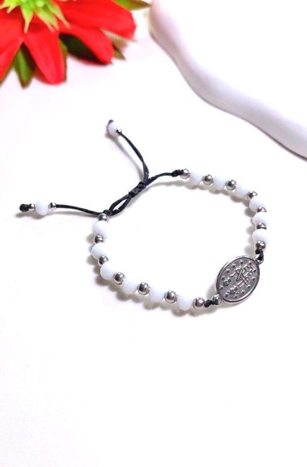 Pulseras regulables hechas a mano con hilo chino , bolitas y medalla de acero. Super recistentes.